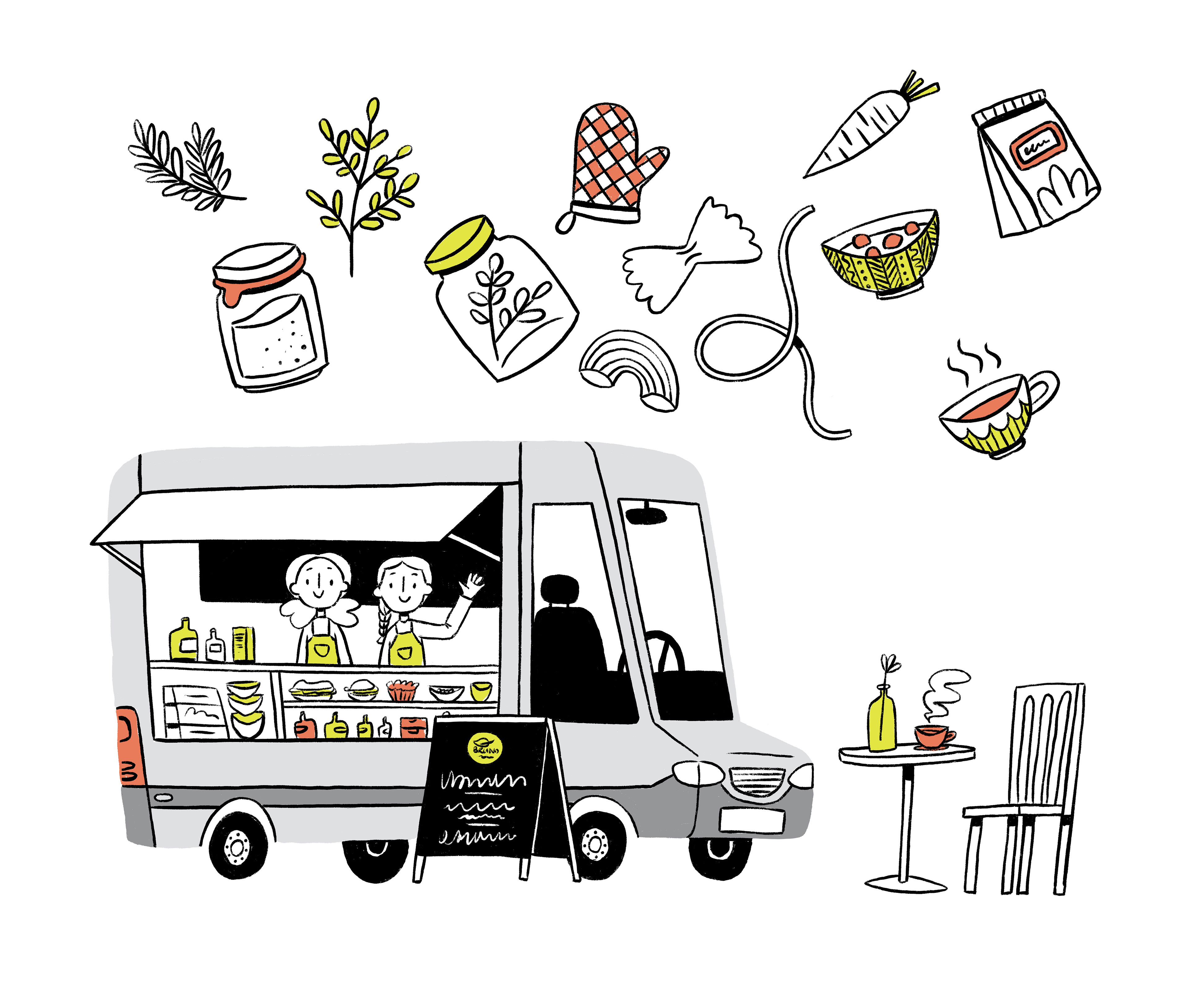 I created these illustrations for BRUNO unverpackt. They only sell regional and unpacked food and products in their van.
