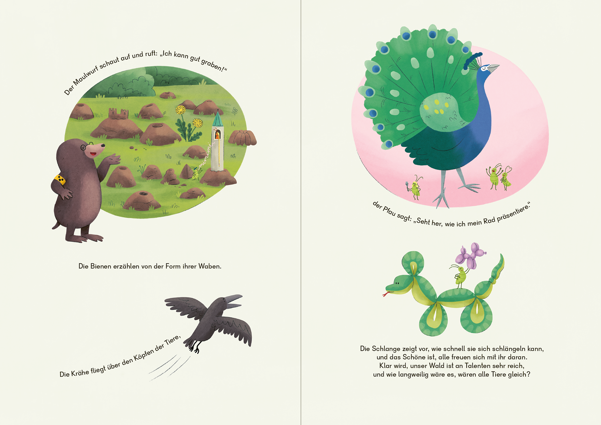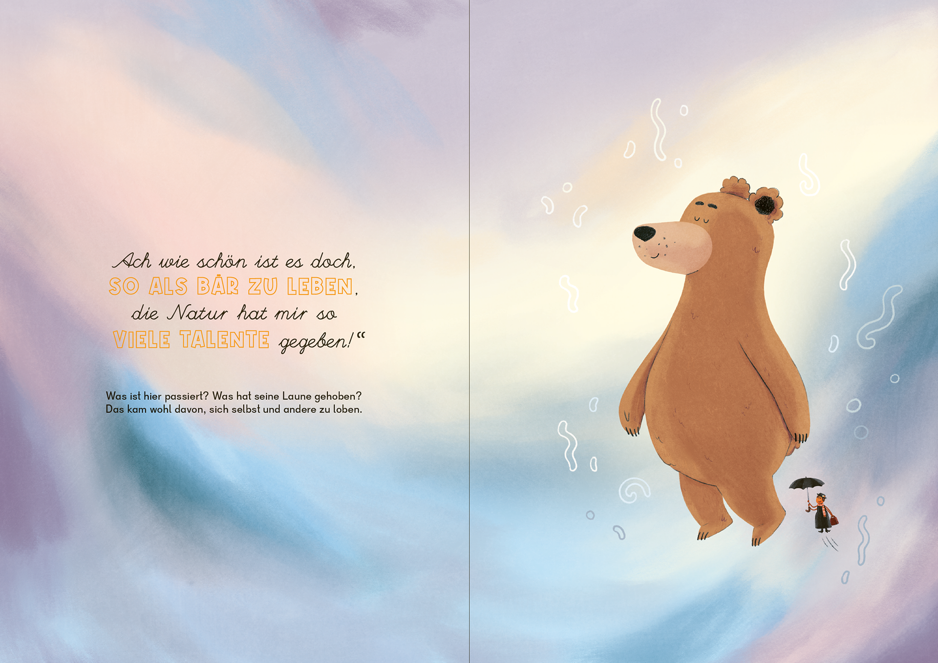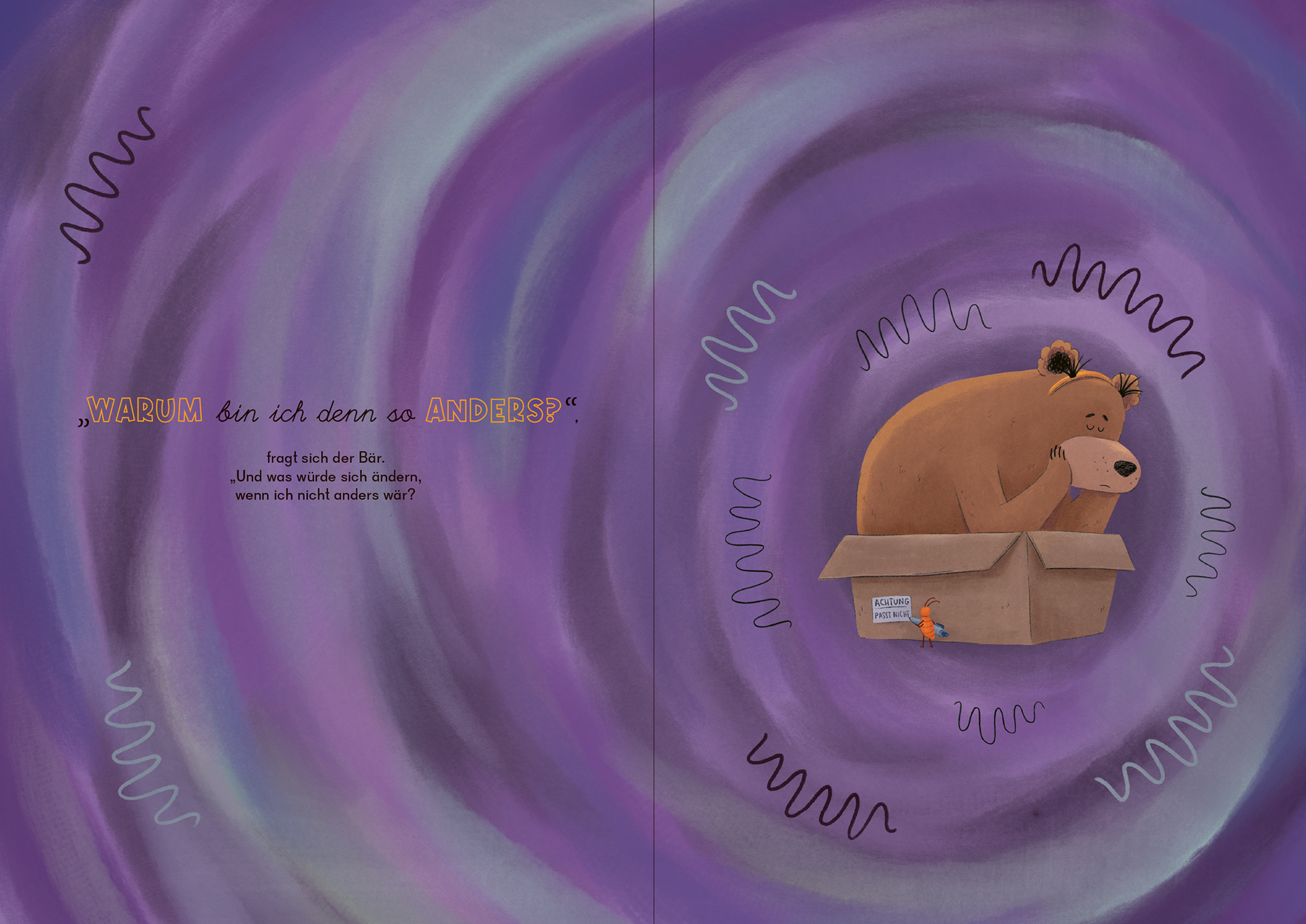 Ich habe die Illustrationen für diese liebevolle Geschichte gestaltet: Der Bär freut sich auf das Waldfest und leiht sich dafür die schönsten Kleider seiner Freunde. Doch nichts passt – und plötzlich kommen Zweifel auf. Eine Geschichte darüber, wie der Bär seine Einzigartigkeit entdeckt und lernt, dass jedes Tier genau richtig ist, wie es ist.